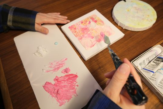 色や素材を重ね、感性のままに表現するテクスチャーアート体験。