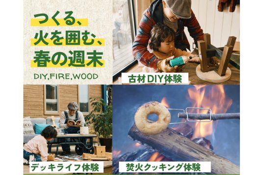 いつもの週末を少し特別に。古材フォトフレームづくりや、野外ストーブを使ったおやつ作り体験など、週末限定で暮らしを体感できるブースが登場します。