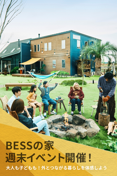 自然の木をふんだんにつかったBESSの家には、吹抜け、大きなウッドデッキ、