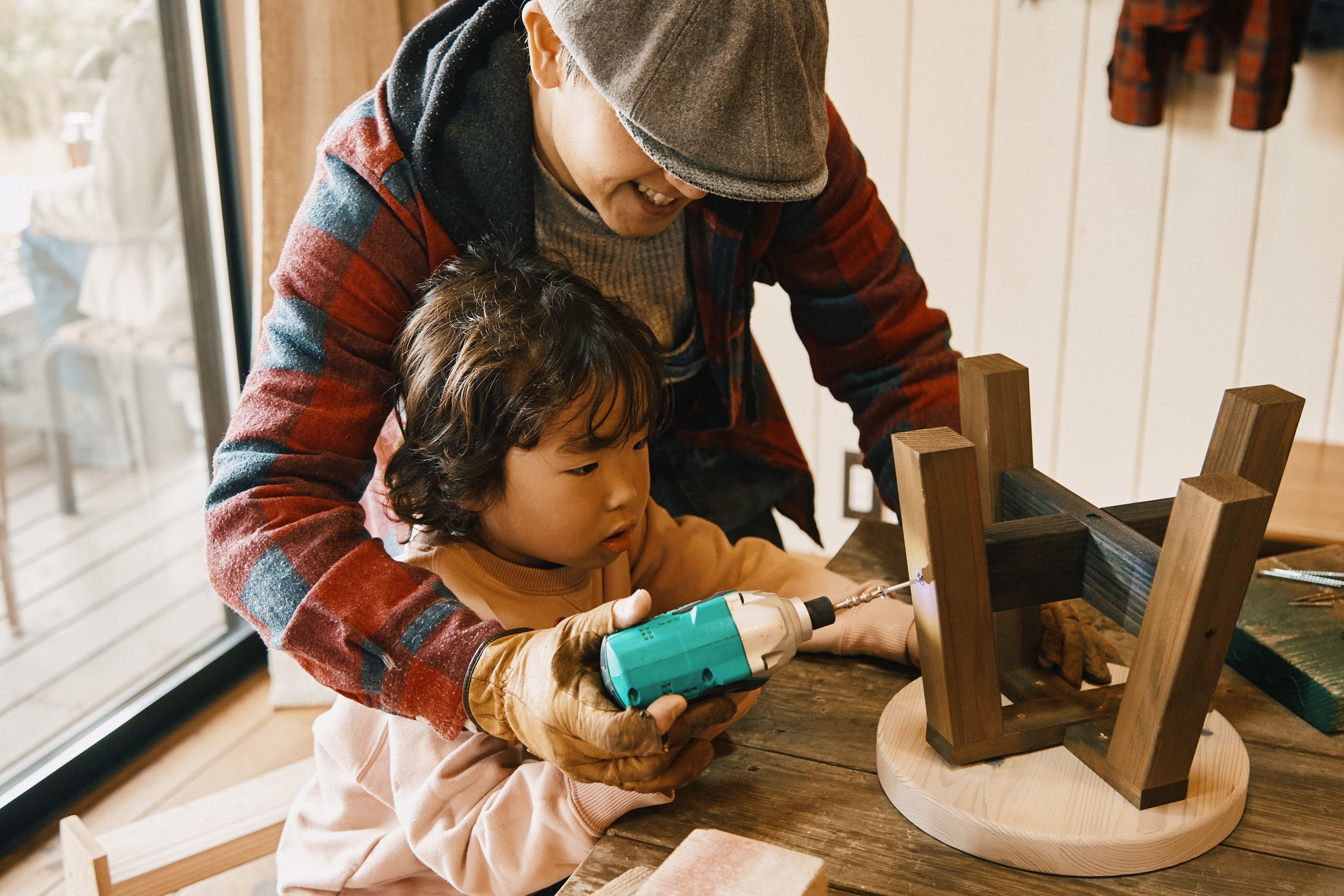 キットに下穴が開いているので、大人の方はもちろん、お子様も一緒につくることができます。
