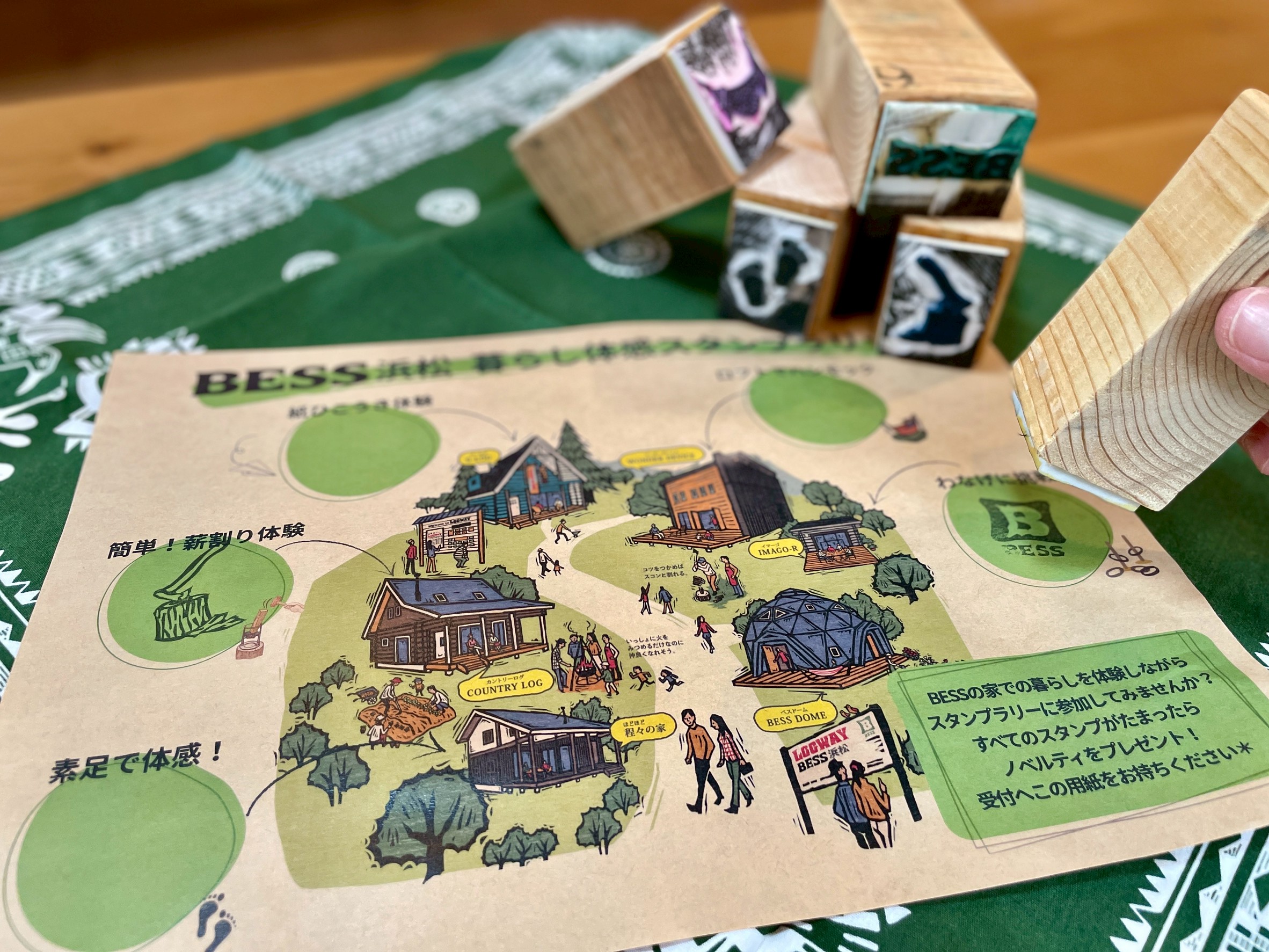 薪割り体験やハンモックコーナーなど、チェックポイントを巡ってスタンプをポン!