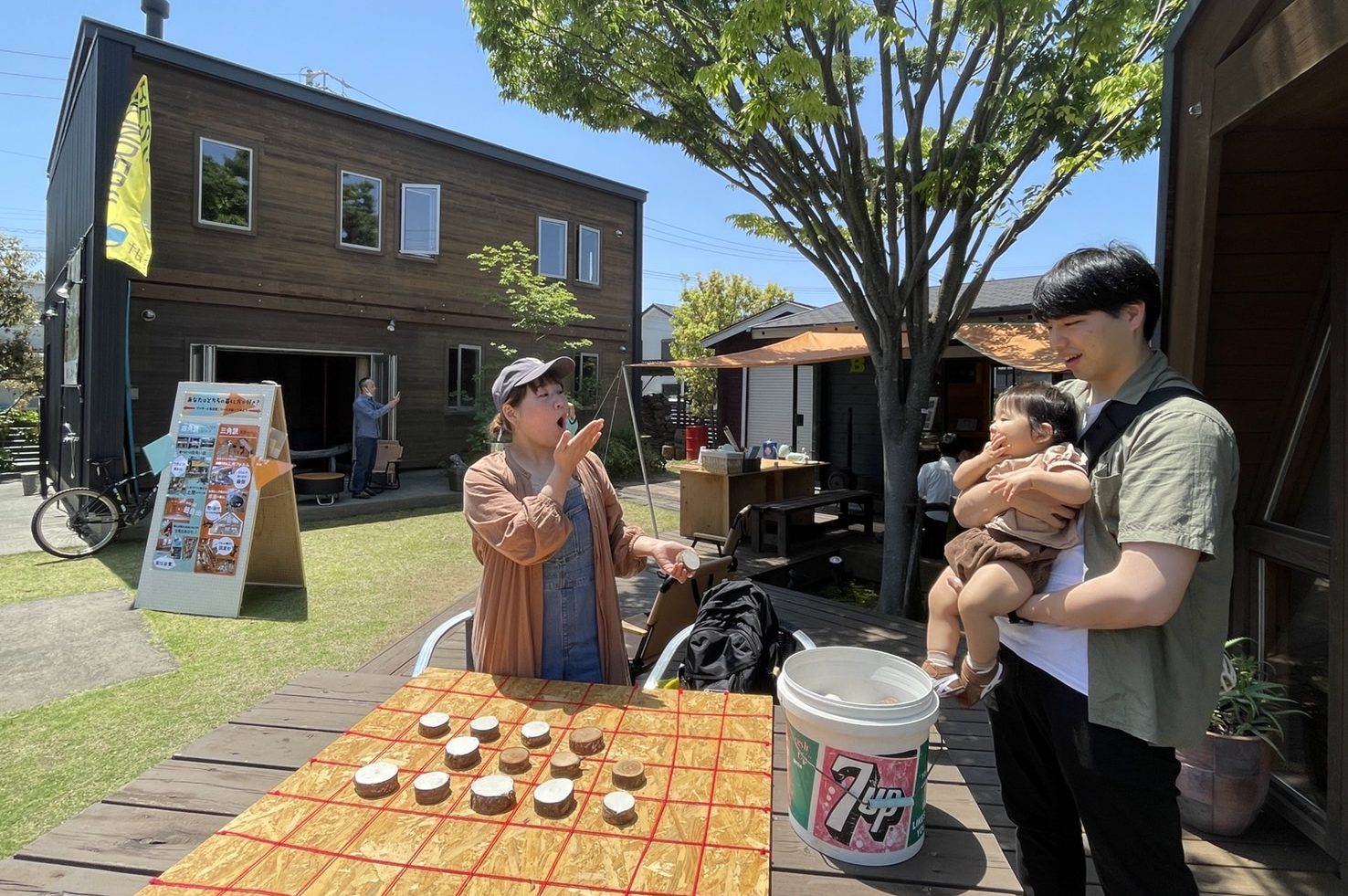 薪割り体験やハンモックコーナーなど、チェックポイントを巡ってスタンプをポン!
