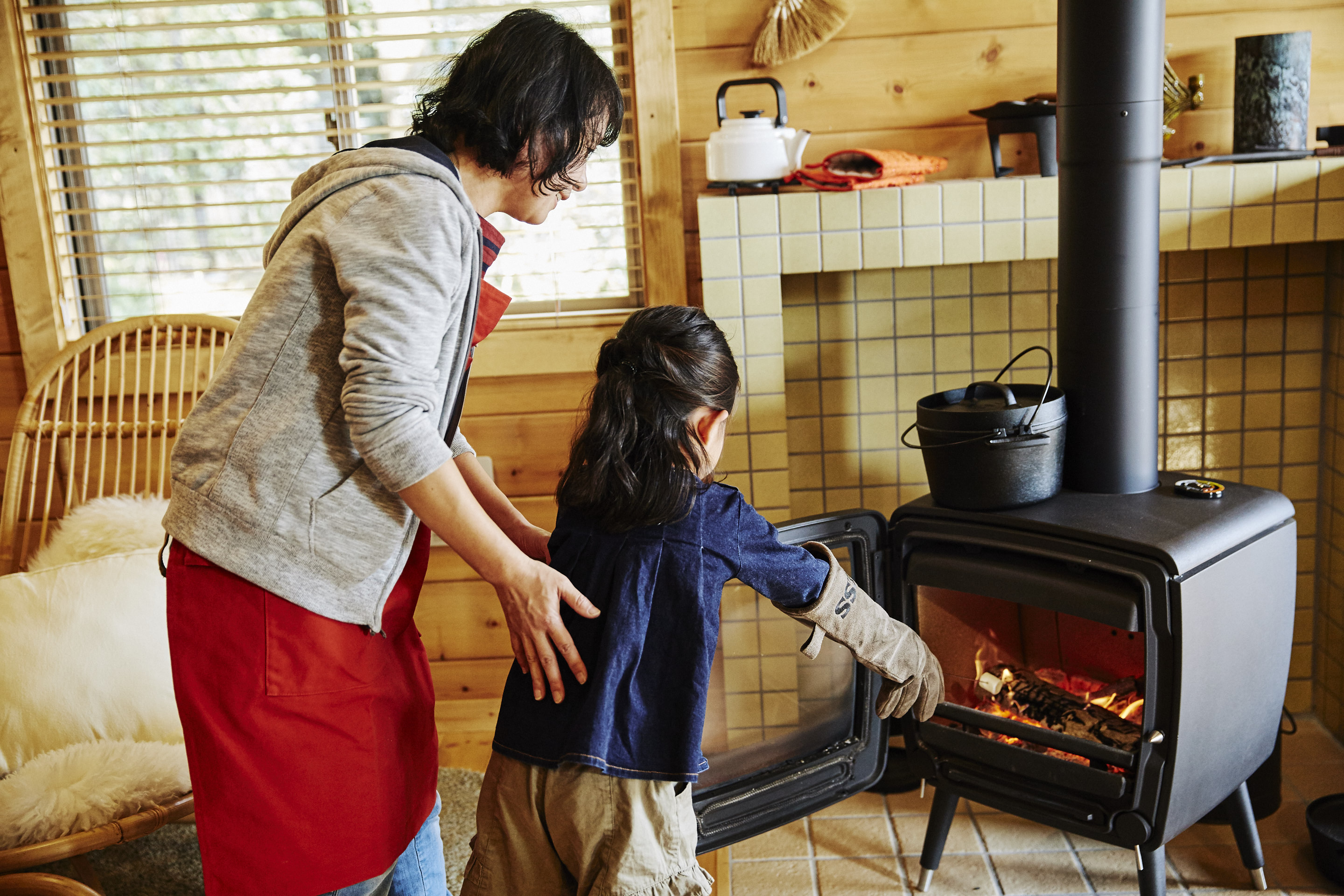 薪ストーブなど、効率だけを重視するより、家族がおおらかに暮らせる家づくりをしています。