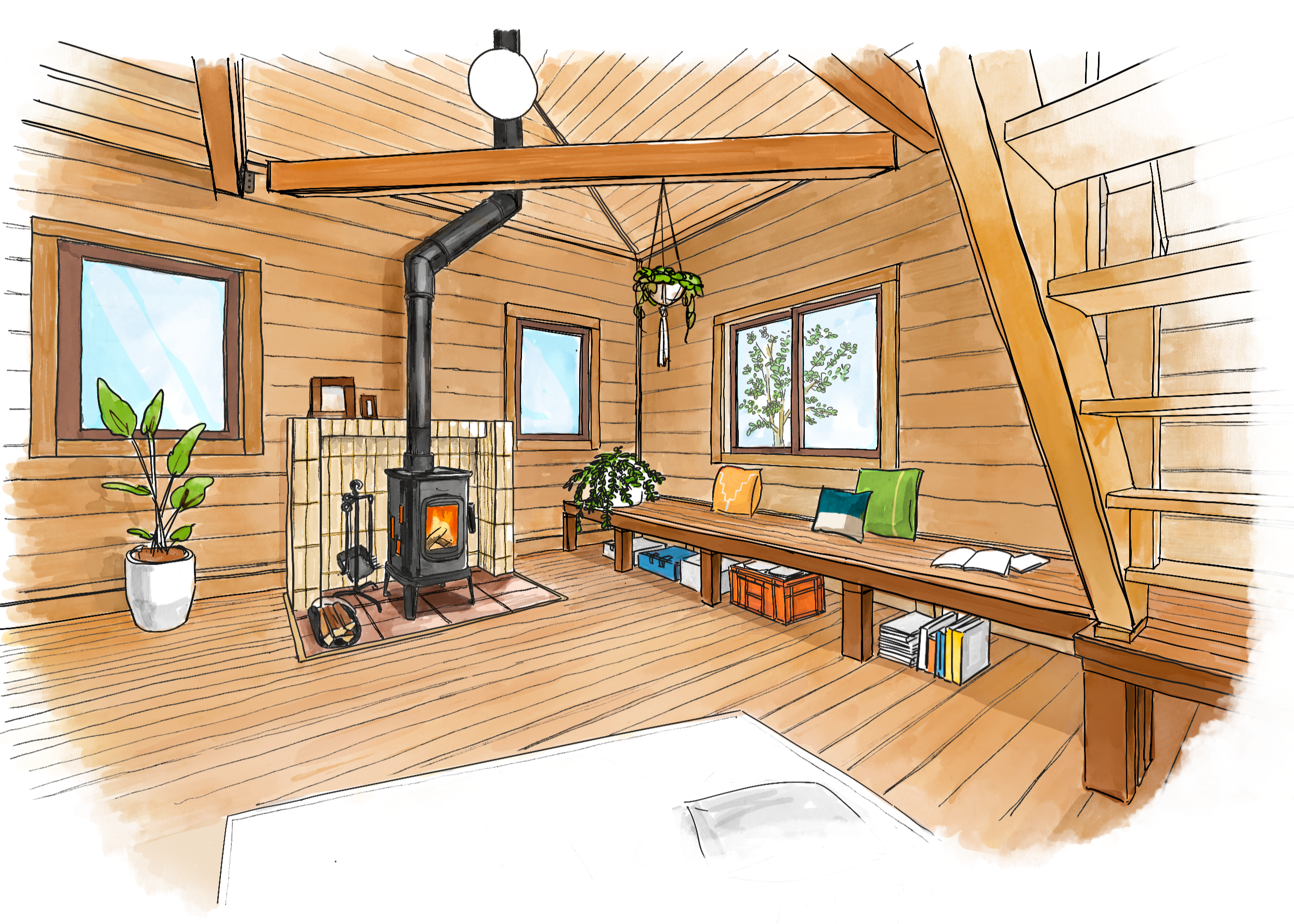 薪ストーブなど、効率だけを重視するより、家族がおおらかに暮らせる家づくりをしています。
